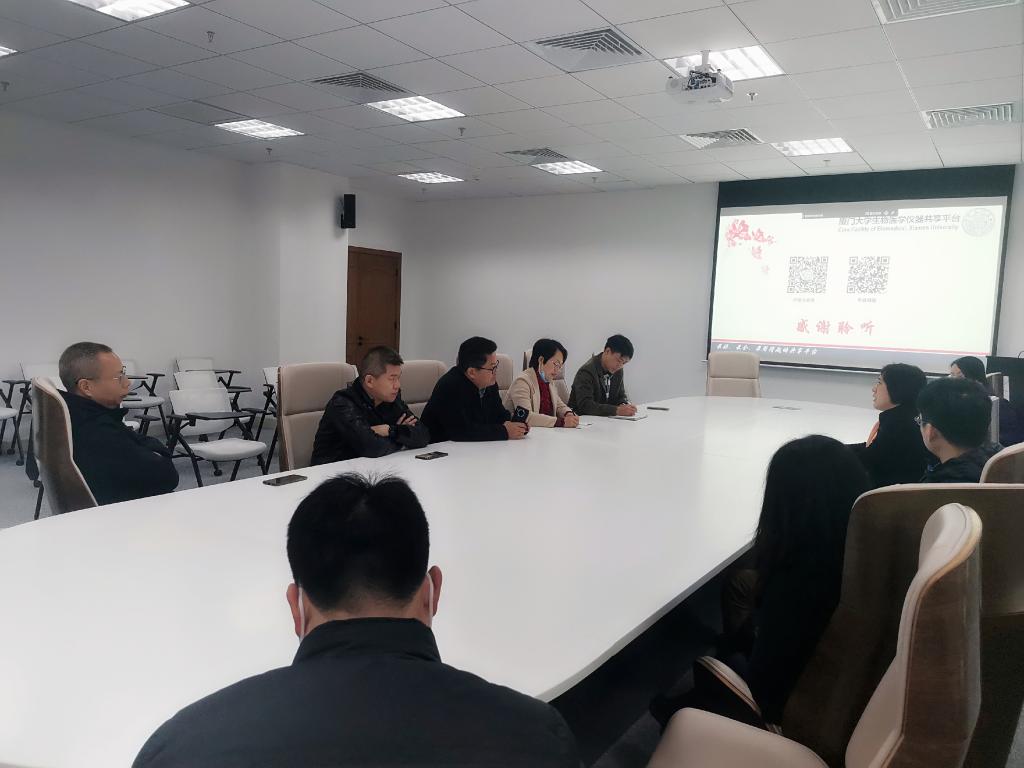 1月15日上午,我校资产与设备管理处及水产学院、食品与生物工程学院一行到厦门大学翔安校区调研交流,厦门大学医学与生命科学学部相关领导、工作人员参会座谈。