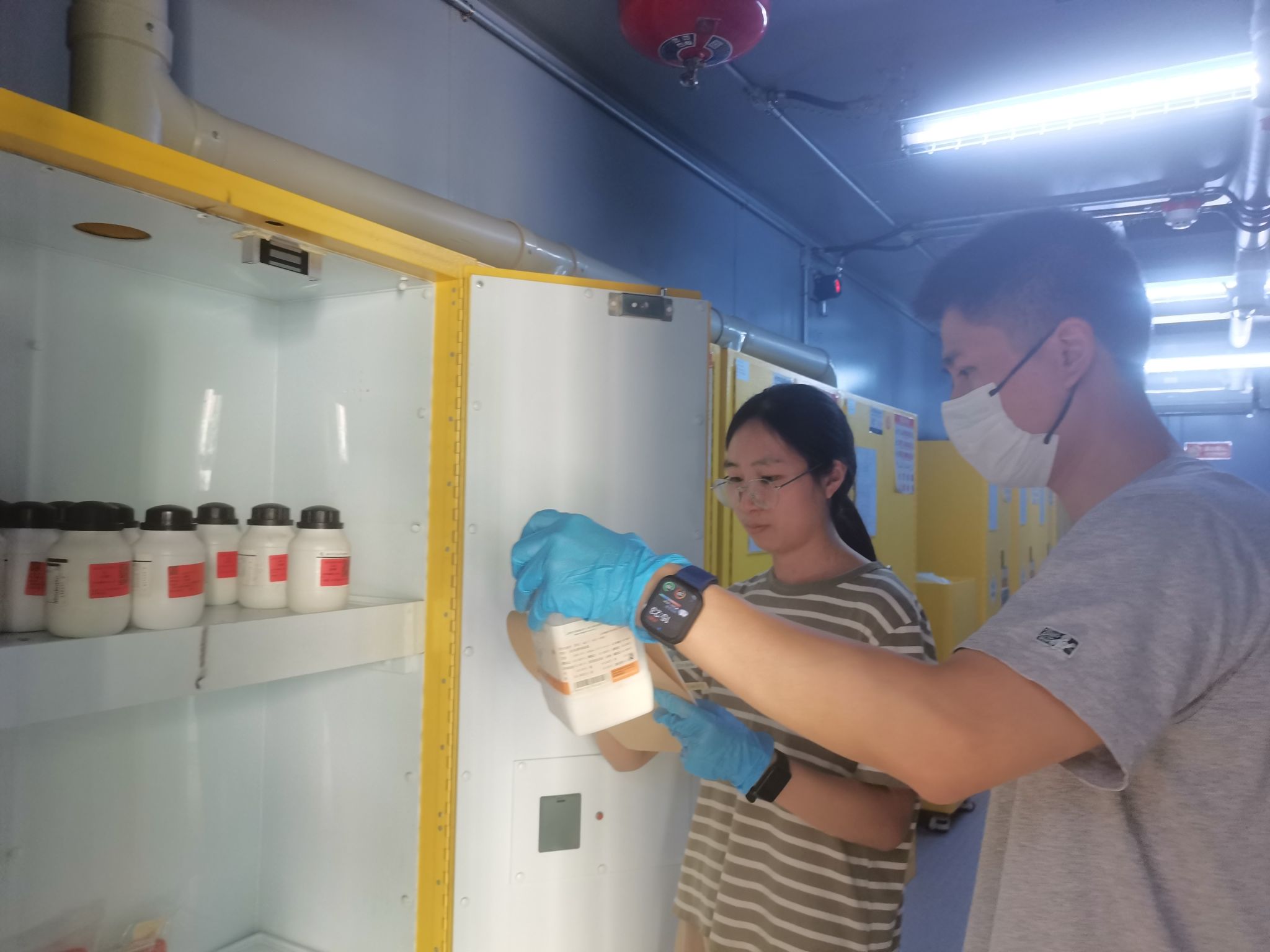 危化品管理员入库进行盘点,确保无药品丢失。