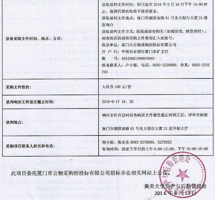 厦门公物-竞争性谈判- GW2016-1052-集美大学报废资产处置拍卖机构选定招标公告