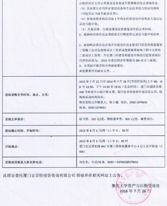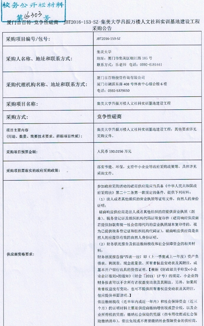 集美大学吕振万楼人文社科实训基地建设工程采购公告