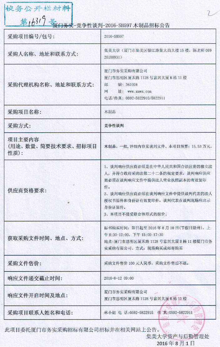 木制品竞争性谈判公告