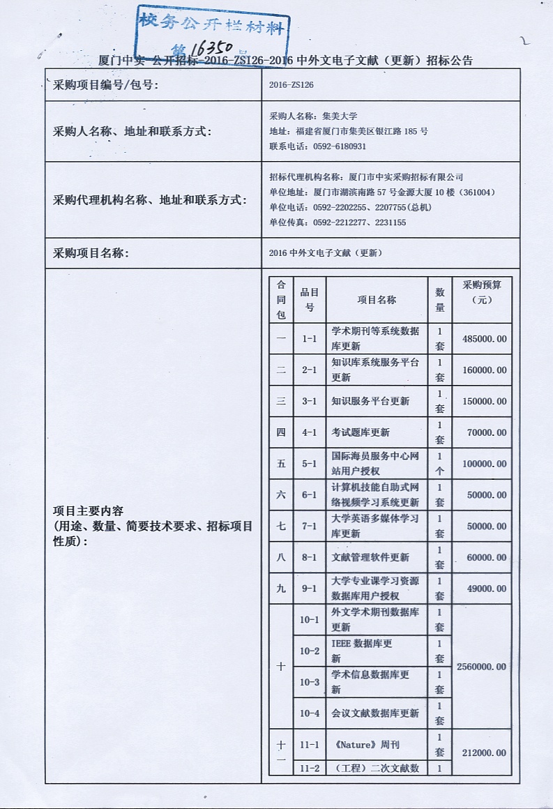 厦门中实—公开招标—2016—ZS126-2016中外电子文献(更新)招标公告