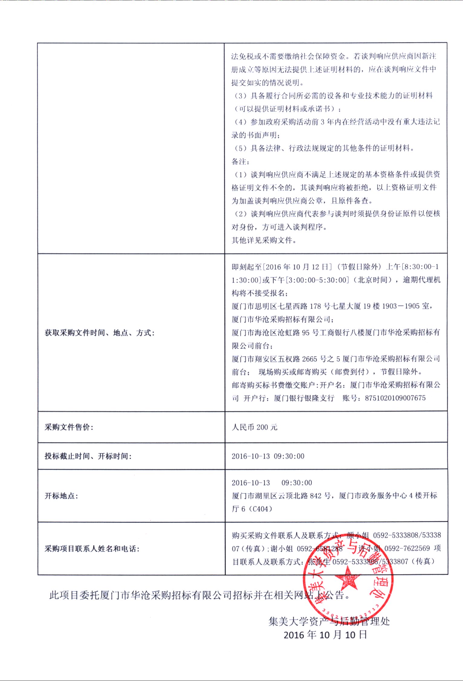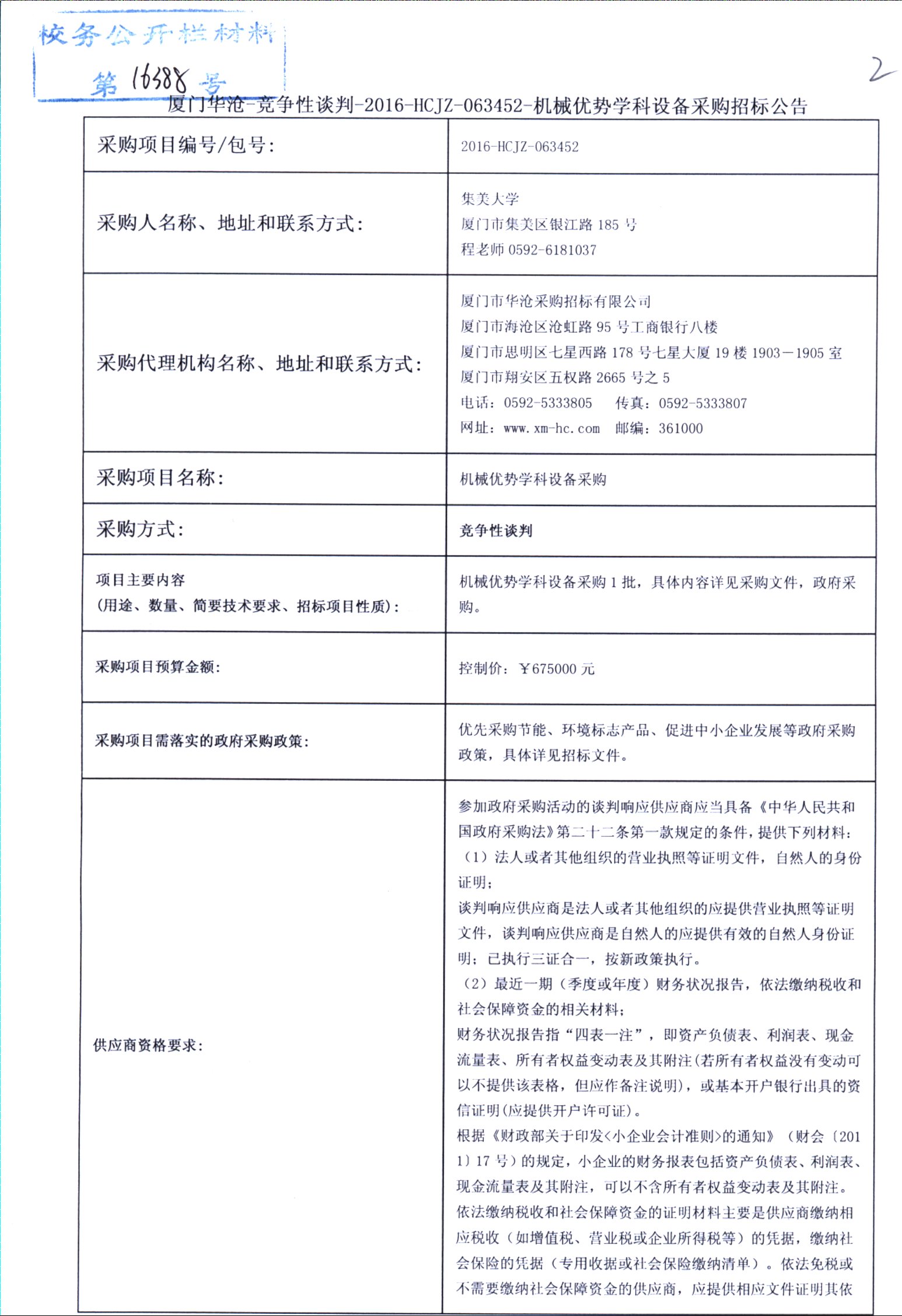 厦门华沧—竞争性谈判—2016—HCJZ—063452—机械优势学科设备采购招标公告