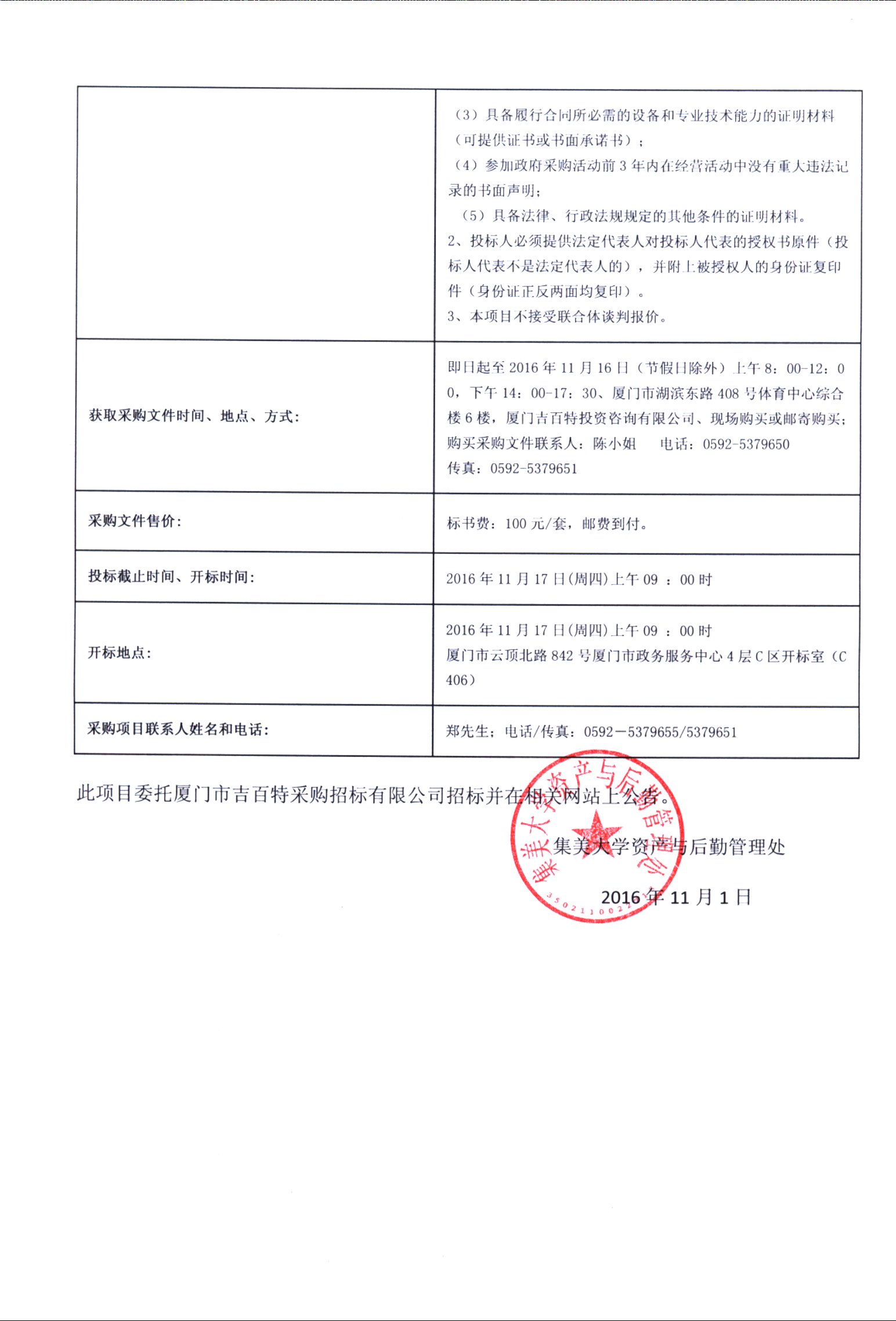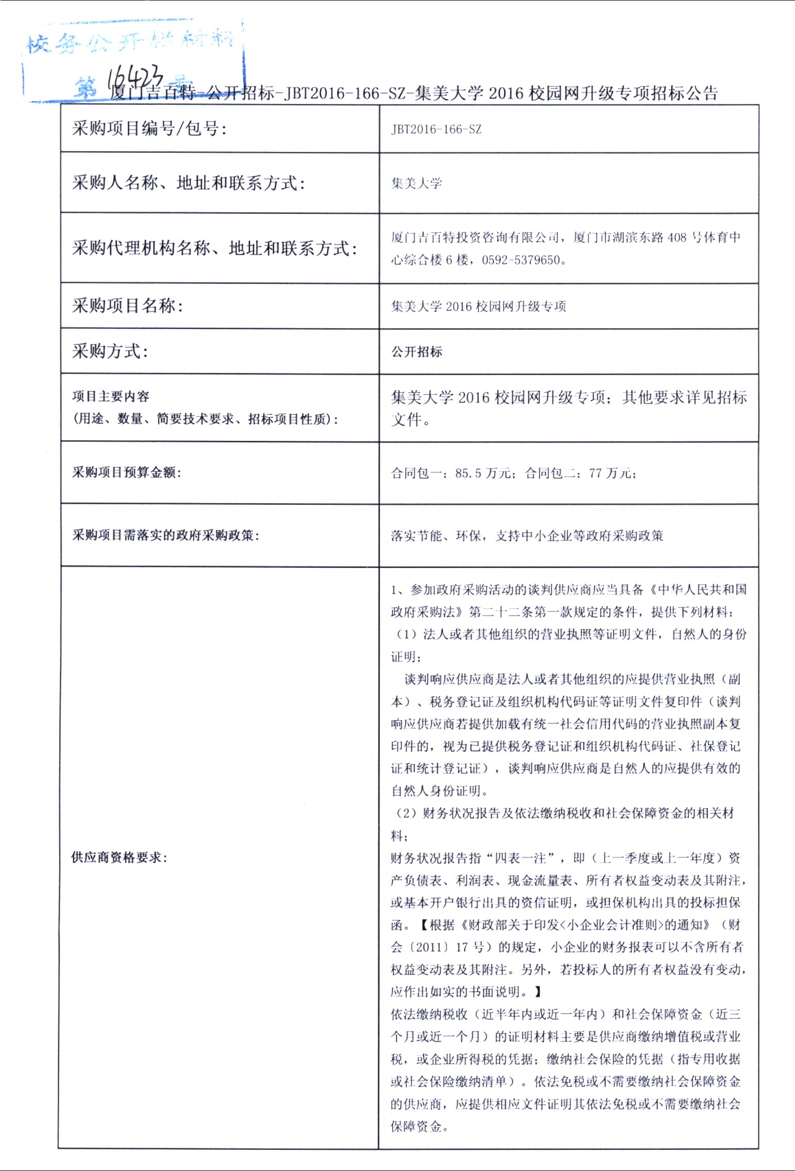厦门吉百特—公开招标—JBT2016-166-SZ—集美大学2016校园网升级专项招标公告