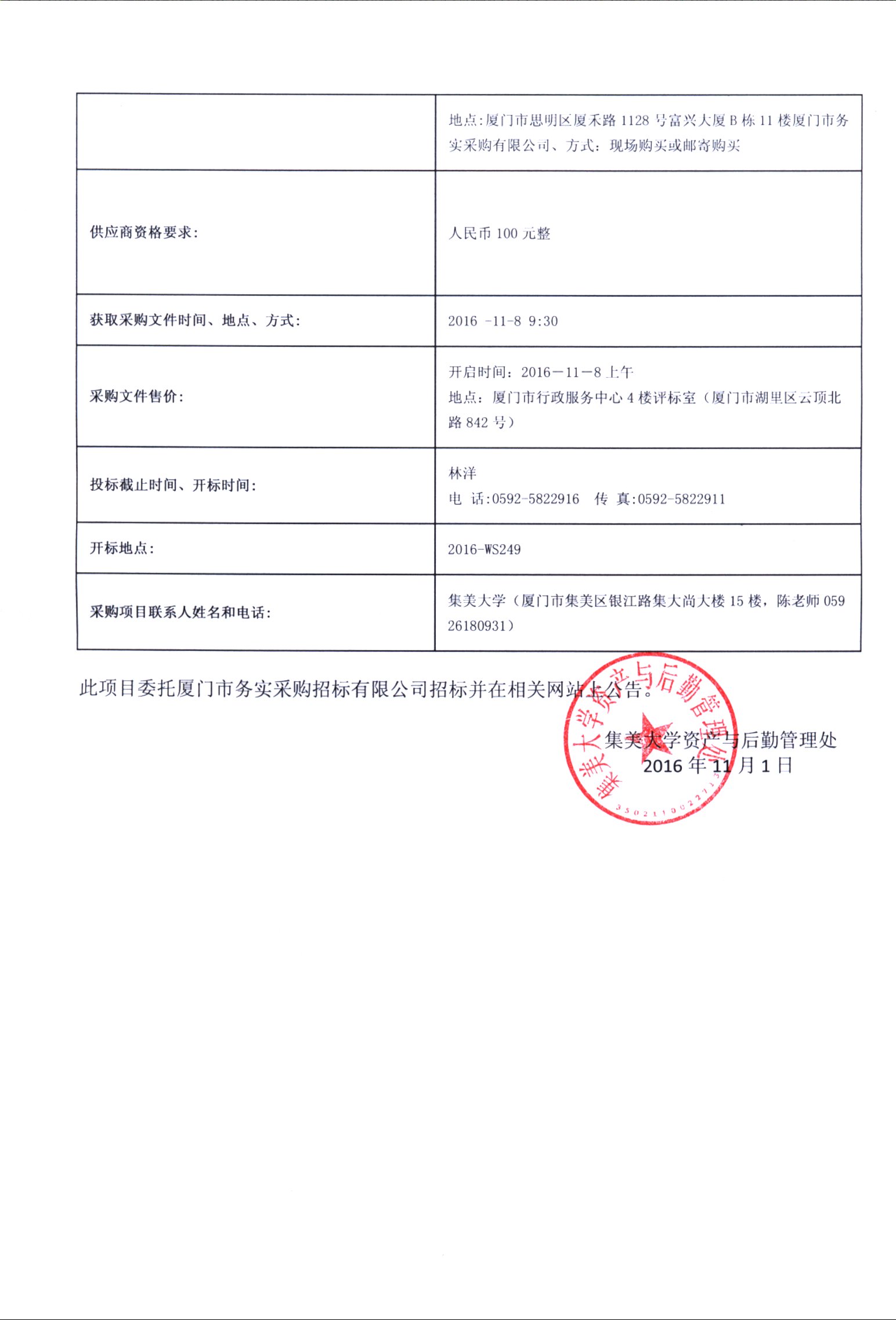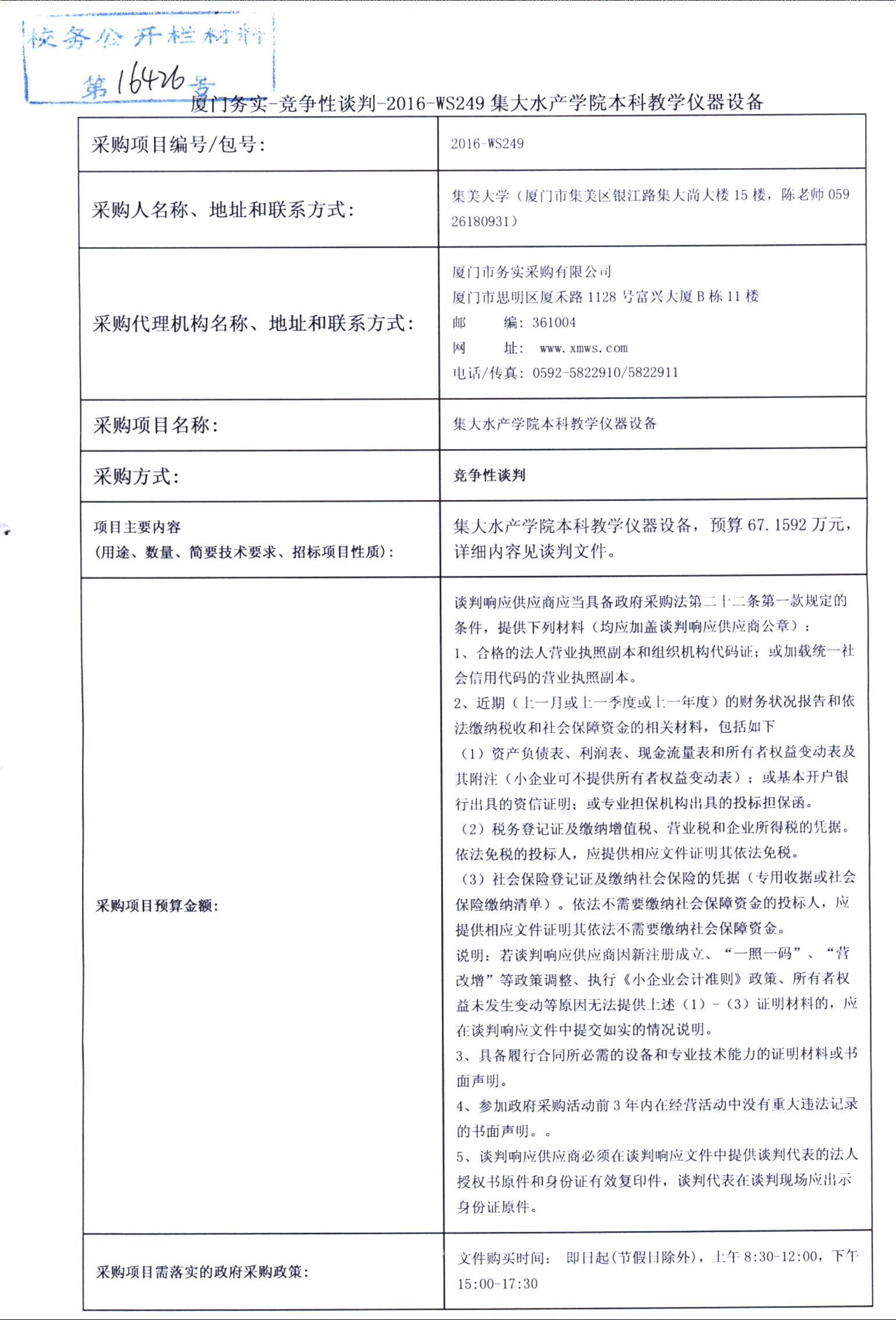 厦门务实—竞争性谈判—2016-WS249集大水产学院本科教学仪器设备