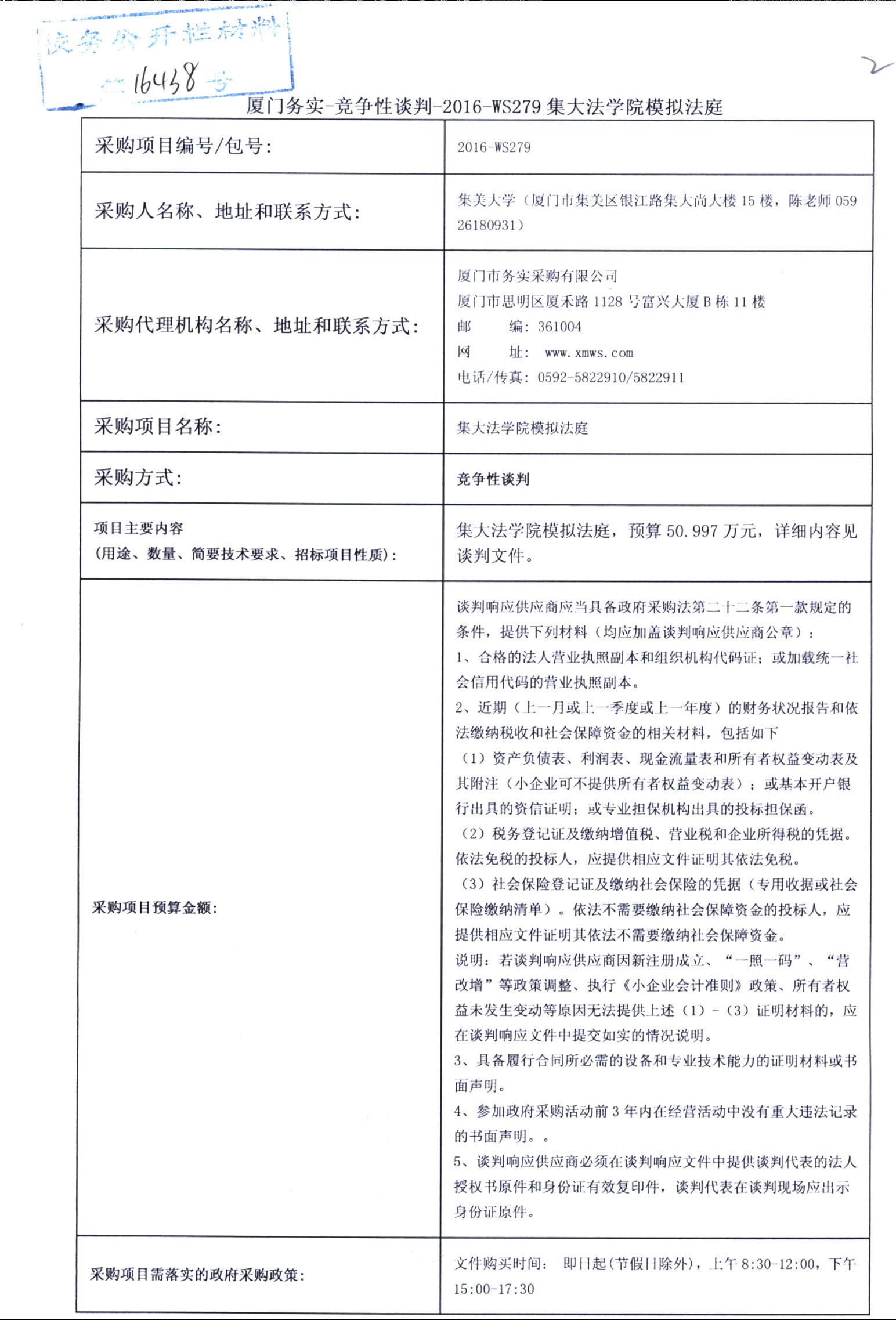 厦门务实-竞争性谈判-2016-WS279集大法学院模拟法庭