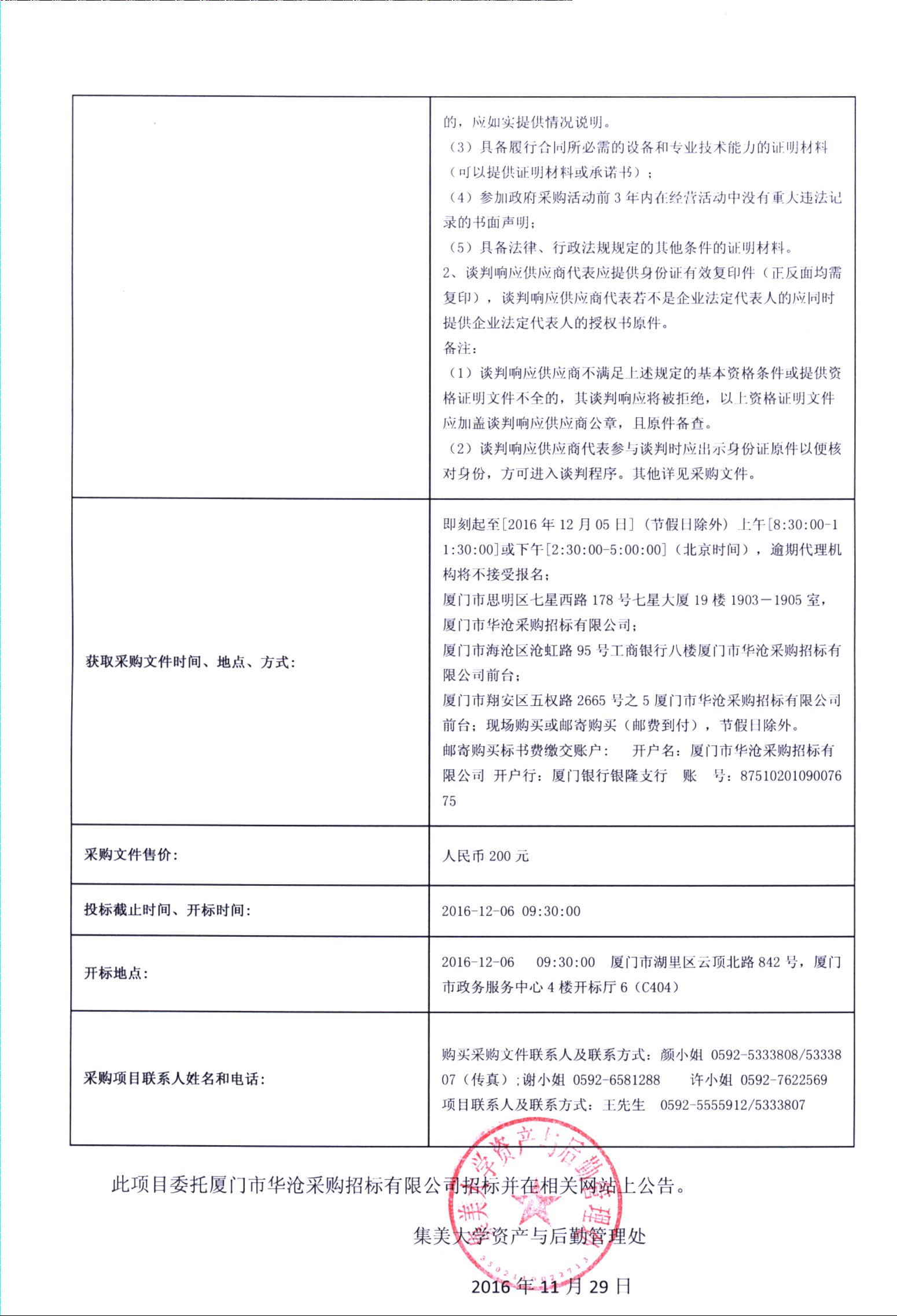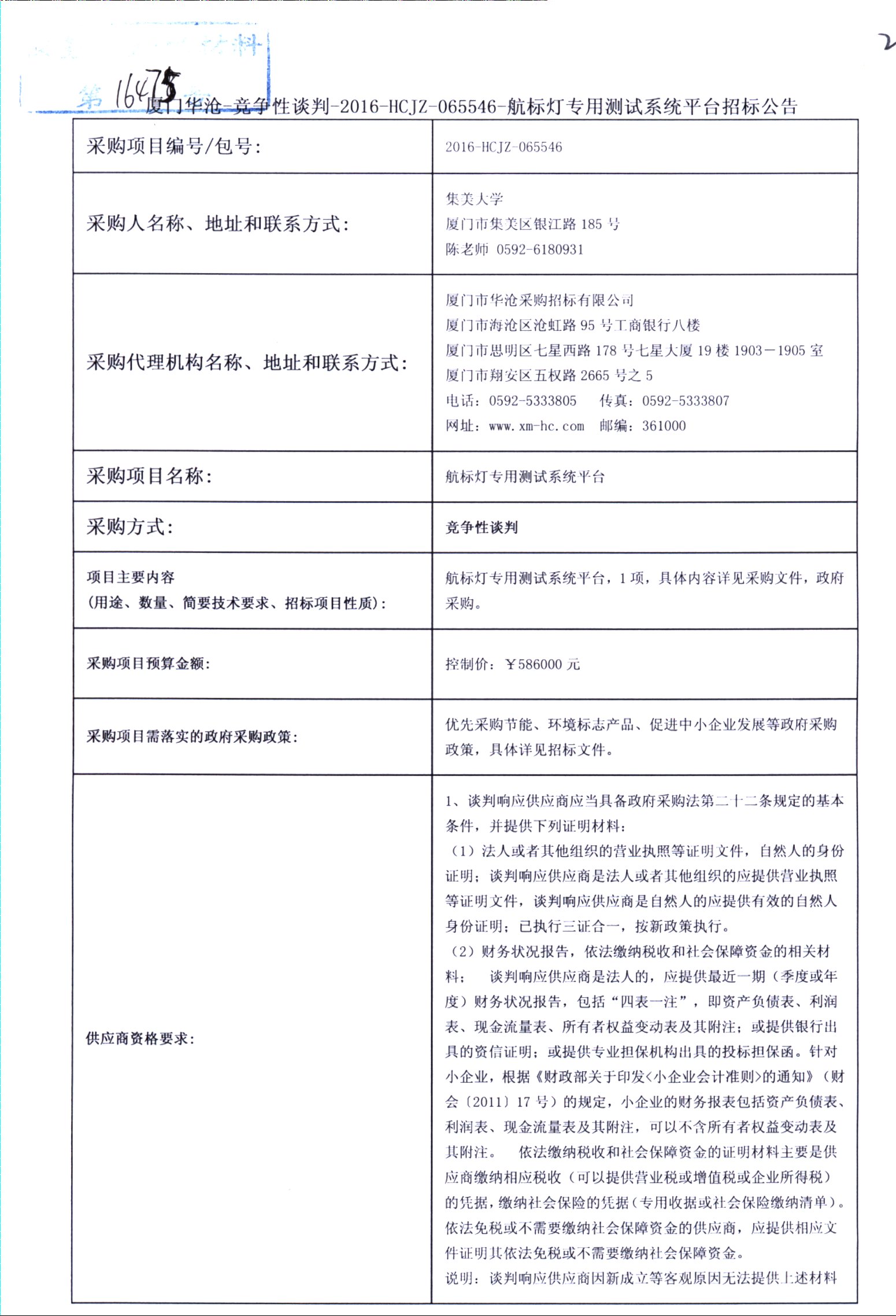 厦门华沧-竞争性谈判-2016-HCJZ-065546-航标灯专用测试系统平台招标公告