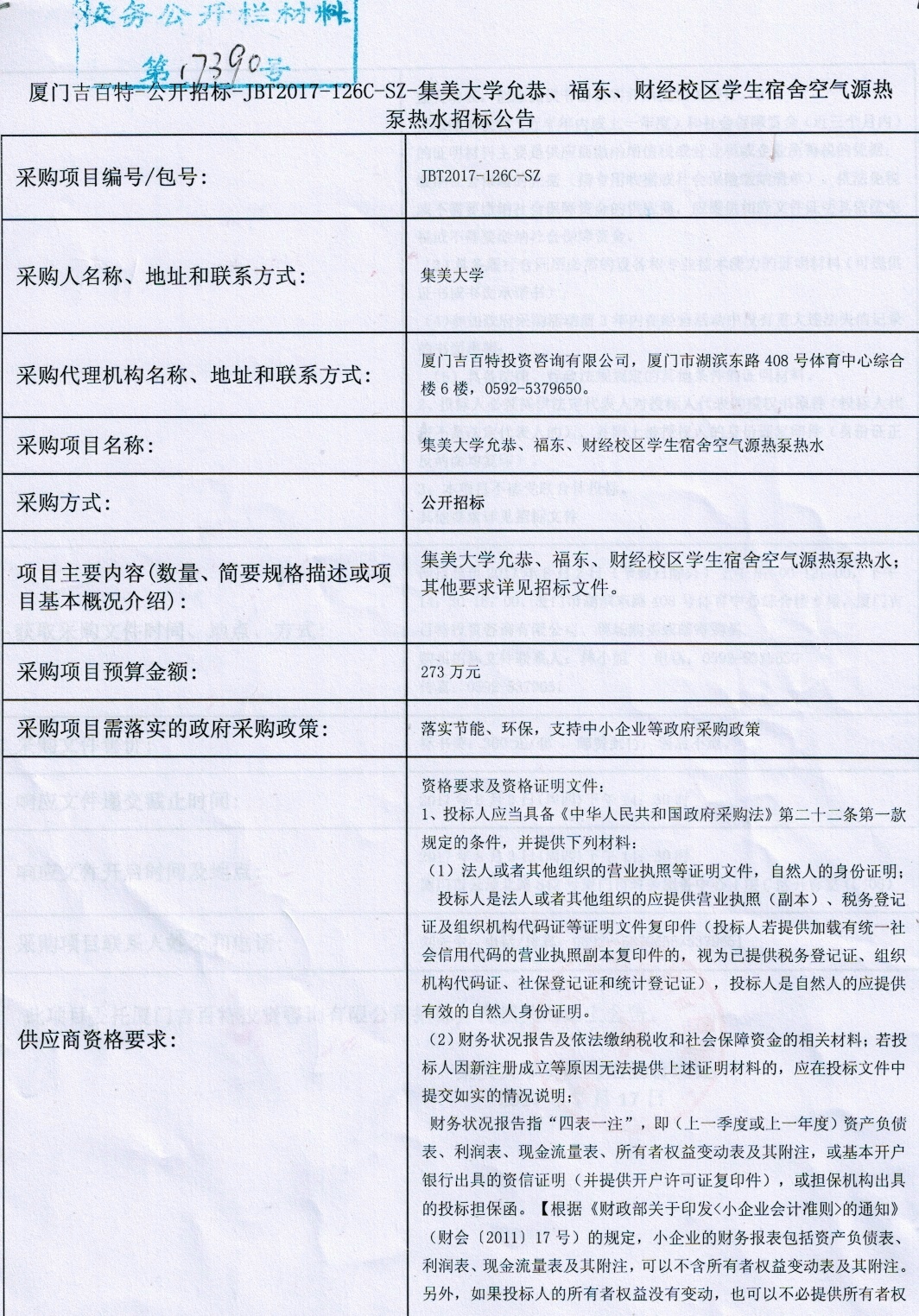 集美大学允恭、福东、财经校区学生宿舍空气源热泵热水招标公告