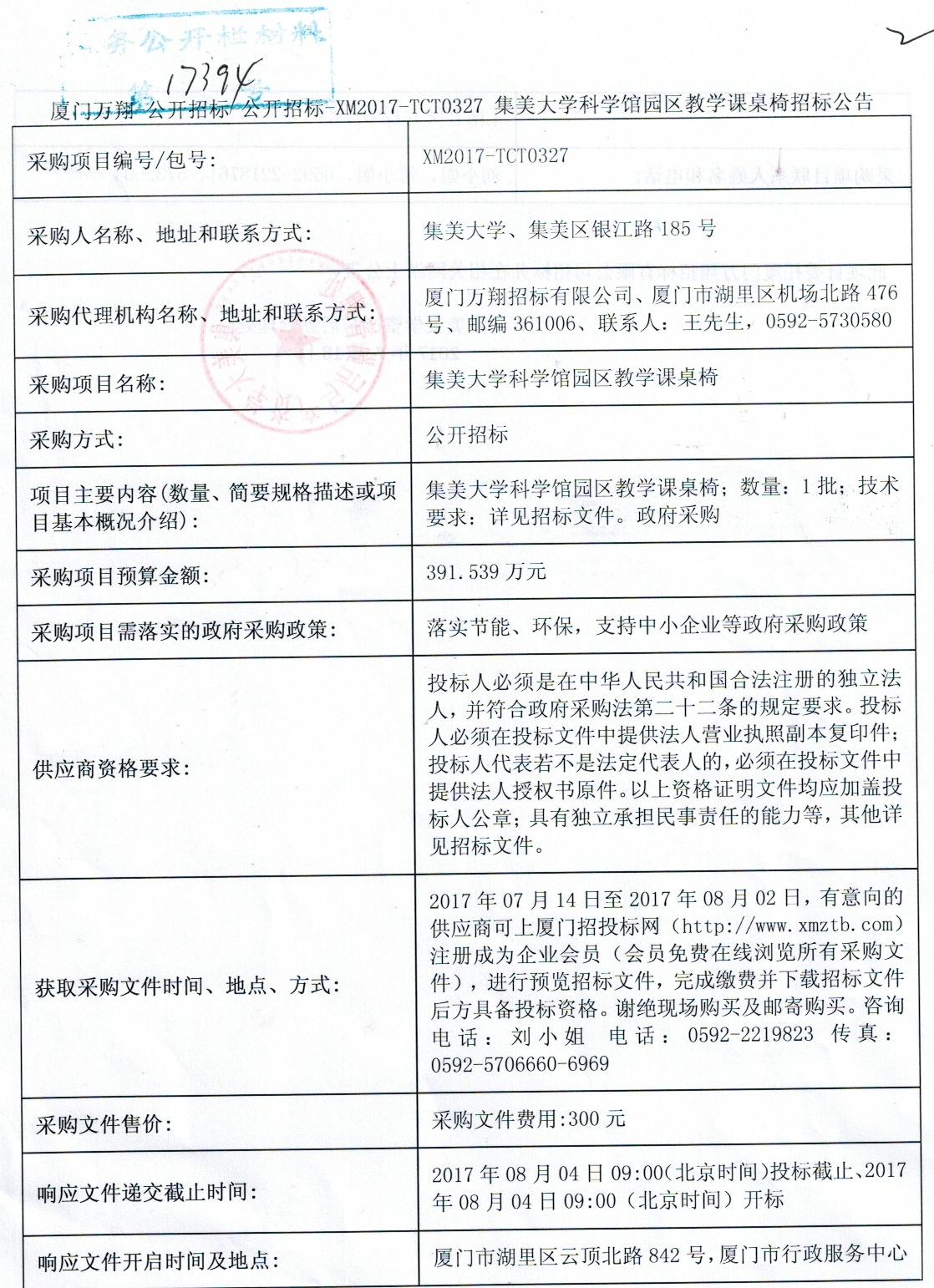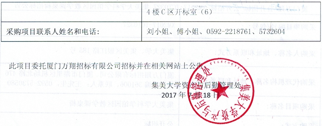 集美大学科学馆园区教学课桌椅采购招标公告