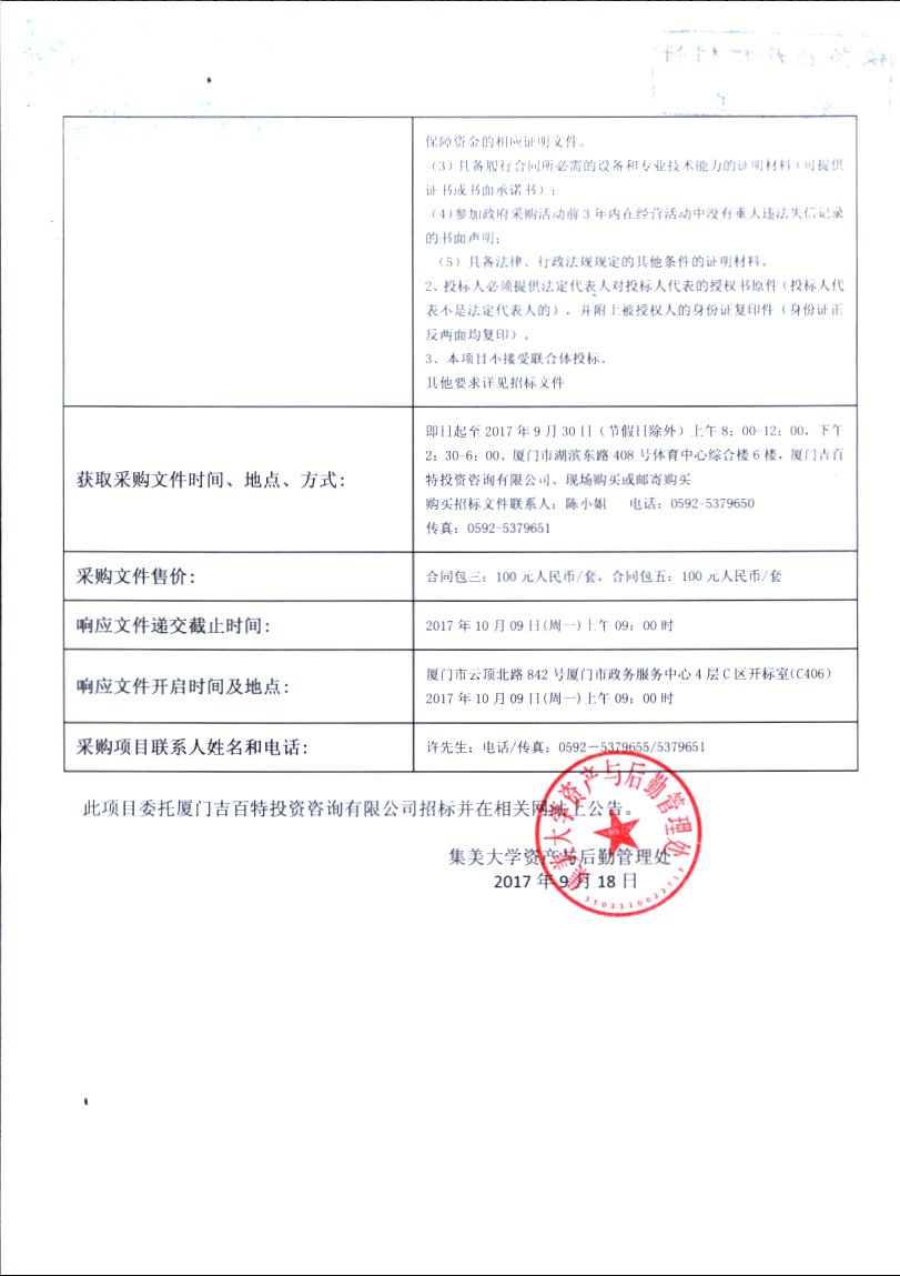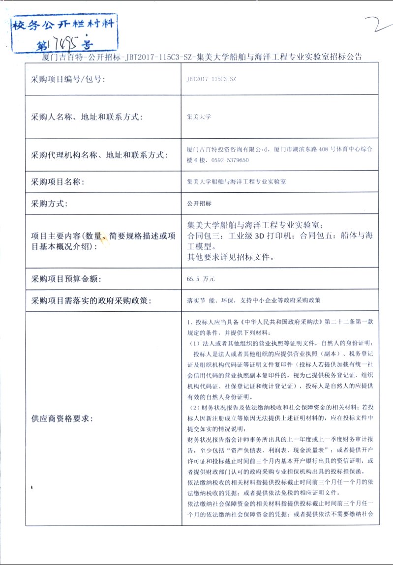 厦门吉百特-公开招标-JBT2017-115C3-SZ-集美大学船舶与海洋工程专业实验室招标公告