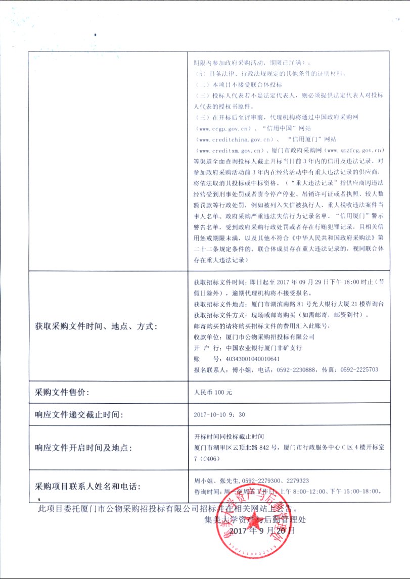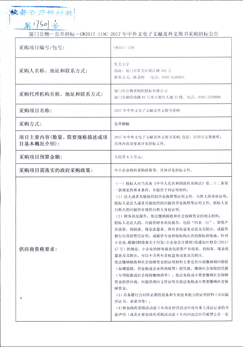 厦门公物-公开招标-GW2017-119C-2017年中外文电子文献及外文图书采购招标公告