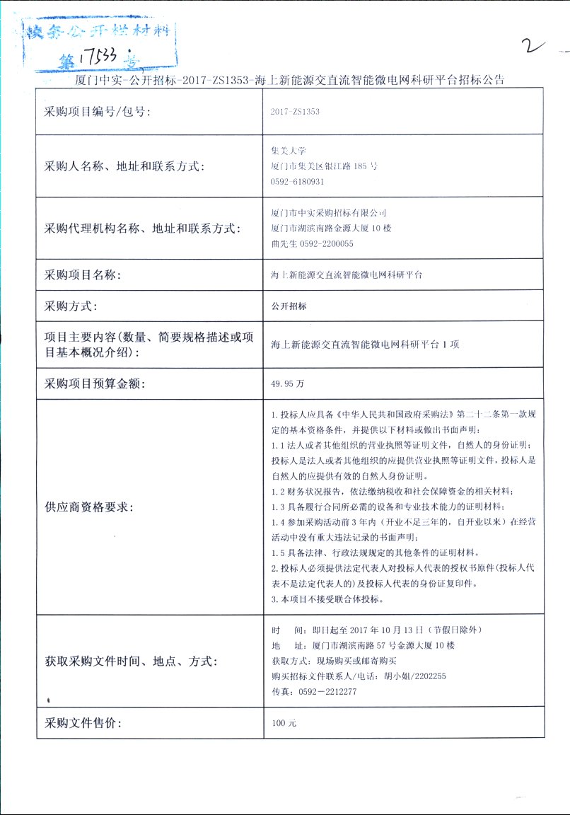 厦门中实-公开招标-2017-ZS1353-海上新能源