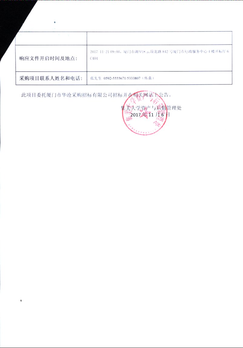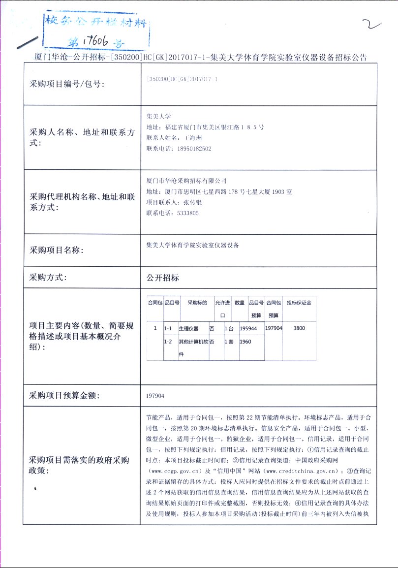 厦门华沧-公开招标-[350200]HC[GK]2017017-1-集美大学体育学院实验室仪器设备招标公告