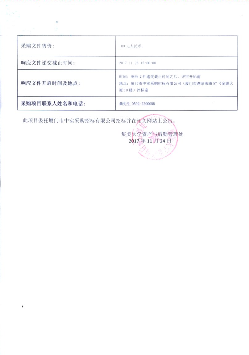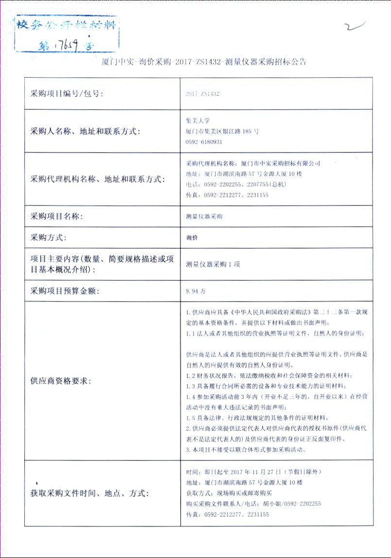 厦门中实-询价采购-2017-ZS1432-测量仪器采购招标公告