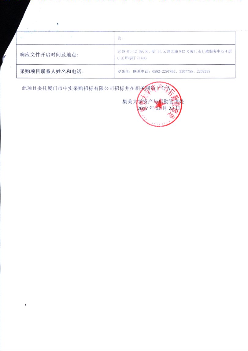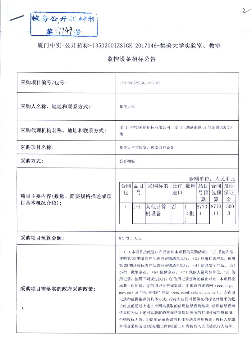 厦门中实-公开招标-[350200]ZS[GK]2017046-集美大学实验室、教室监控设备招标公告