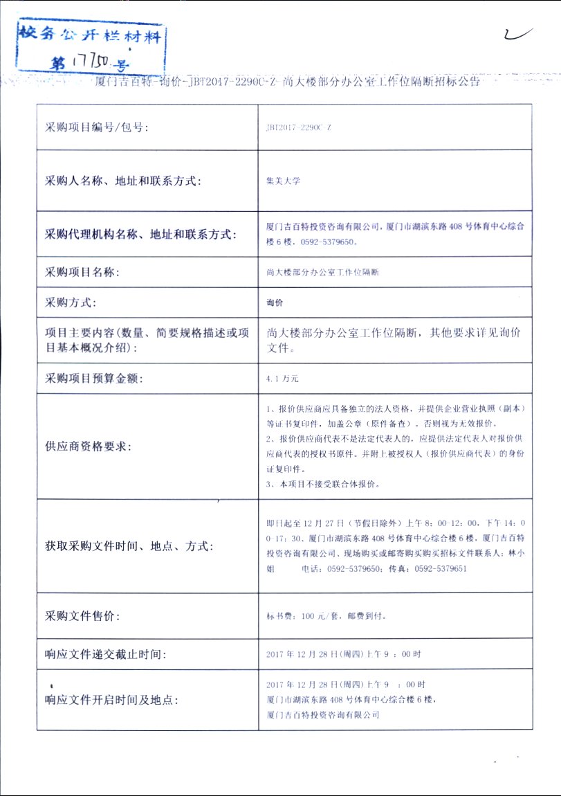 厦门吉百特-询价-JBT2017-2290C-Z-尚大楼部分办公室工作位隔断招标公告