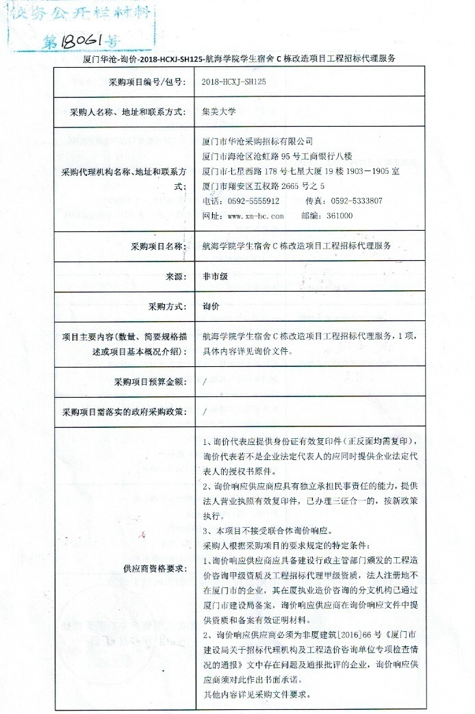 航海学院学生宿舍C栋改造项目工程招标代理服务询价采购公告